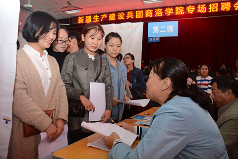 新疆生产建设兵团与我校在毕业生就业工作方面已合作多年,兵团招聘团负责人表示,在疆工作的商洛学院毕业生能吃苦、工作认真,部分就业生成长迅速,已经取得骄人成就。希望在校大学生能够切合实际正确择业,可以先就业再择业。